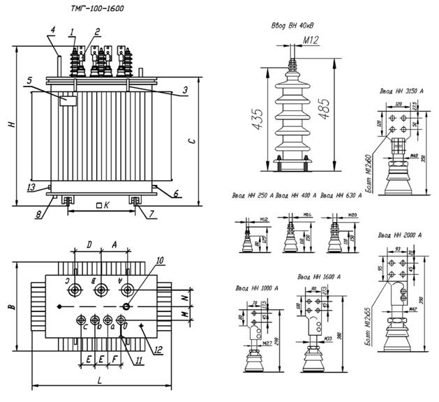 Силовые трансформаторы с высшим напряжением 12-20 кВ.